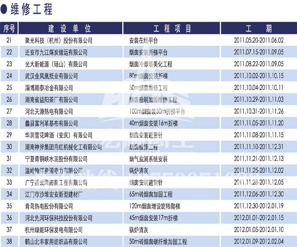 宏順建設(shè)工程有限公司是國家批準(zhǔn)成立的專業(yè)高空作業(yè)企業(yè):承攬過(國內(nèi).國外)煙囪新建、煙囪防腐、磚煙囪新建、煙囪改造、煙囪維修、煙囪脫硫防腐、煙囪拆除加高、煙囪滑膜等高空作業(yè)工程。具有“不搭腳手架 、 不需要停產(chǎn)”施工特點。